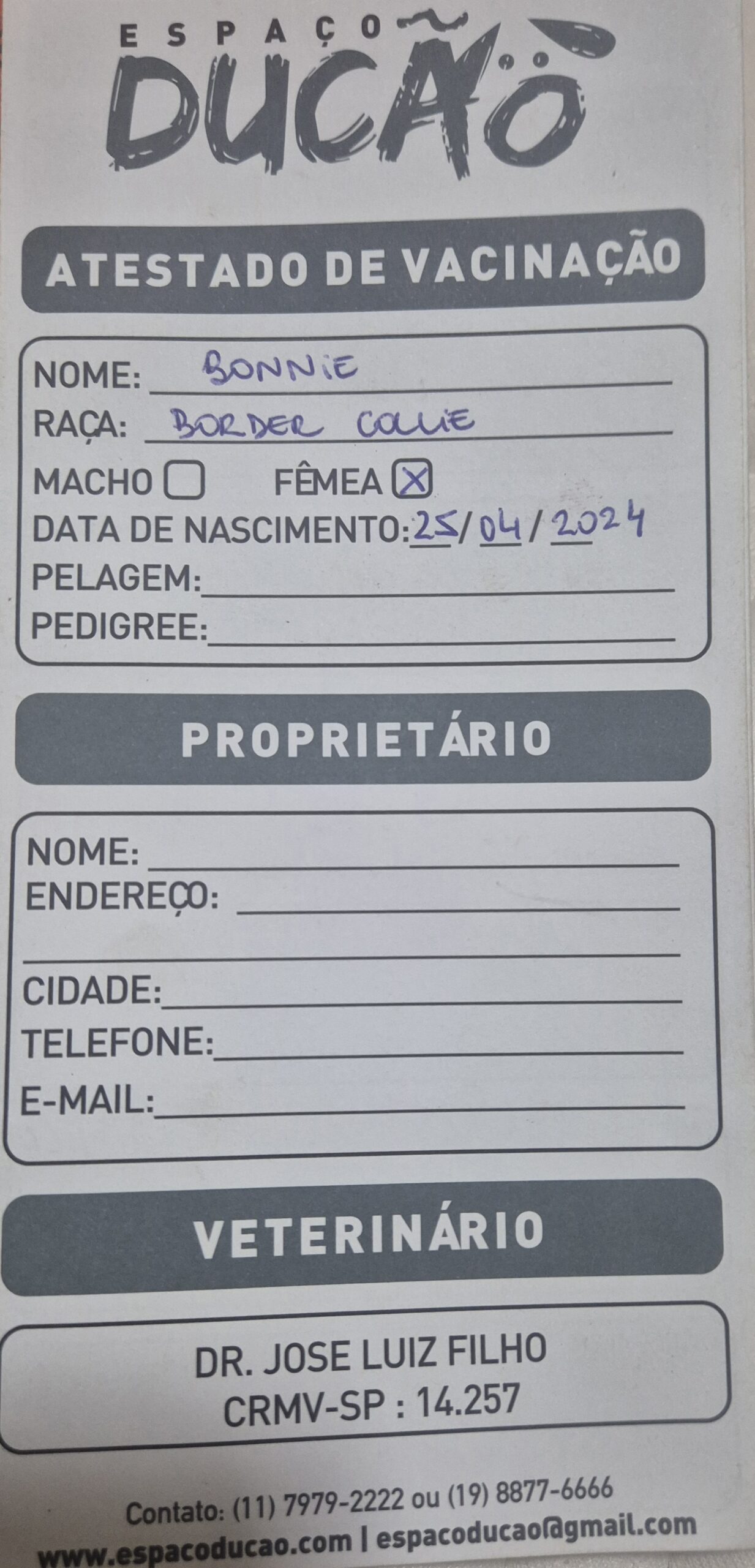 | Nome do cão: Bonnie |
