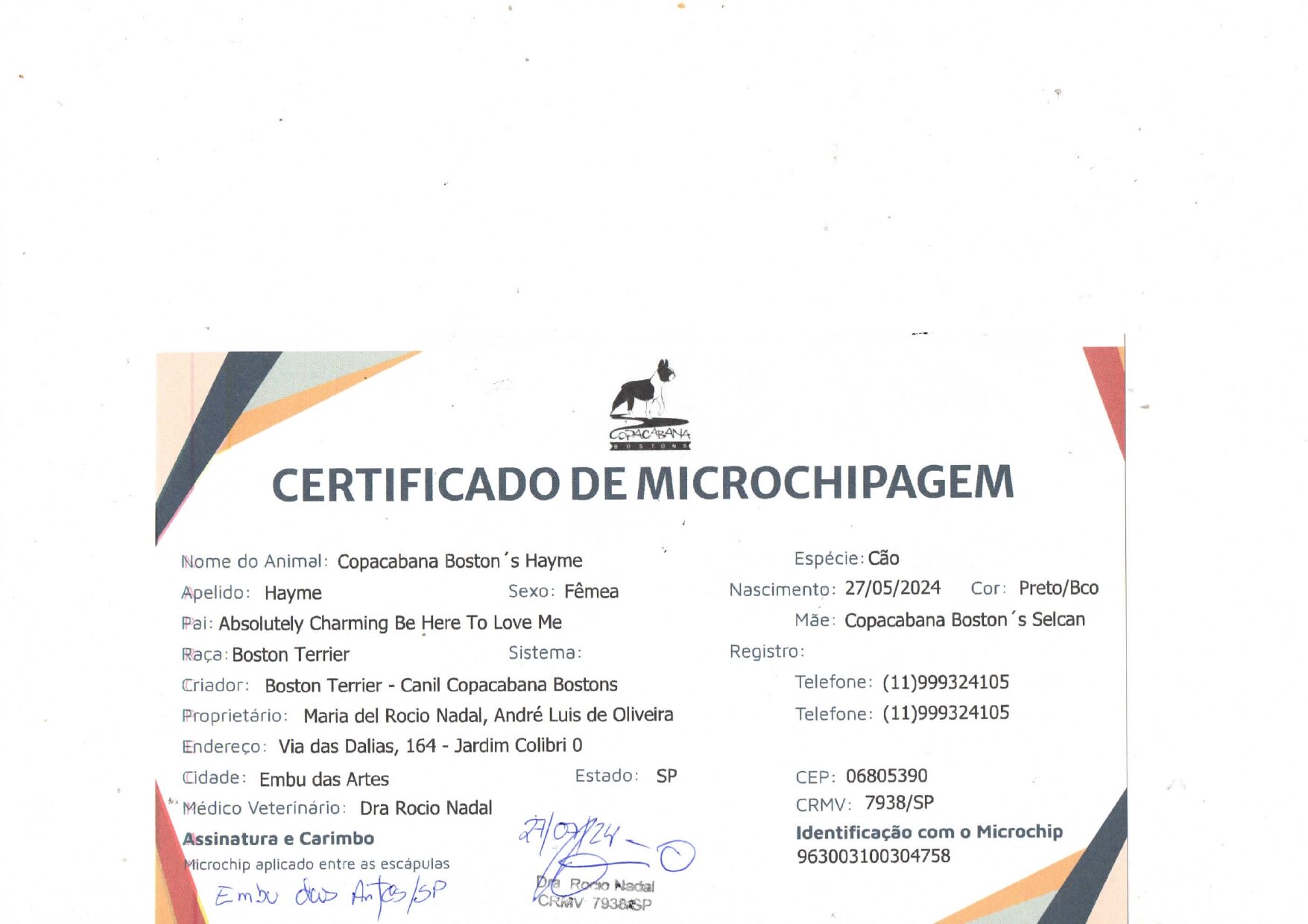 | Nome de registro: Copacabana Boston´s Hayme |