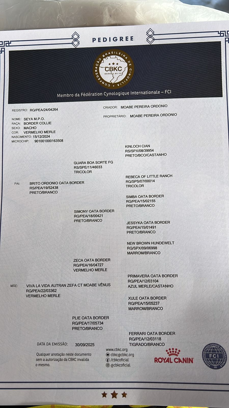 | Microchip: 901001000163508 |